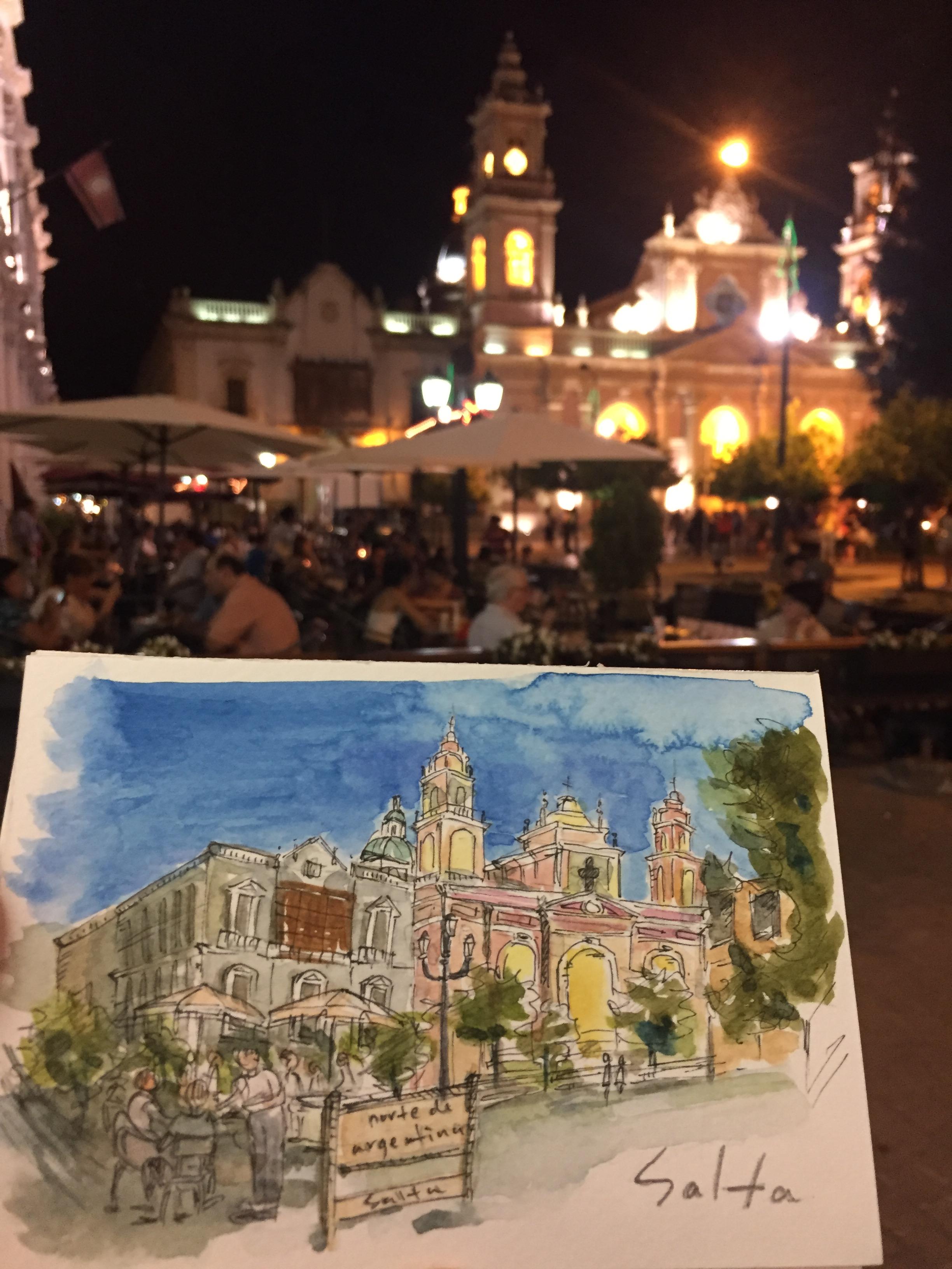 여름 한낮의 살타는 무척 뜨거워서 30분만 걸어도 금방 지친다. 하루의 더위가 식고 어둠이 내리기 시작하면 사람들은 Plaza 9 de Julio 광장으로 나간다. 개와 늑대의 시간, 매직 아워에 돌입하면 이 공원은 살타 시민들의 놀이터가 된다. 친구들과 가족, 그리고 때론 연인과 함께 산책을 나온 사람들로 가득하다. 우리도 음료수를 한 개씩 사들고 벤치에 앉아서 잠시 동네 사람 코스프레를 해 보았다. 완전히 어둠이 내리면 San Francisco 성당에 불이 켜진다. 광장에서 이어지는 길을 따라 야시장도 열린다. 지역 특산물인 핑크색 원석을 이용해 만들었다는 목걸이를 몇 번씩 들었다 놨다를 반복하고 있다. 예쁘긴 하지만 액세서리를 하지 않을게 분명하기 때문에, 나의 소비에 대한 다른 정당성을 찾는 중이다. 이렇게 광장을 걷다가 반가운 얼굴을 마주쳤다. 페루 쿠스코에서도 만났던 한국 커플이다. 남미 여행코스가 비슷하게 흘러가기 때문에 이렇게 다시 만나는 일이 종종 있는데 잠시 만난 인연이라도 타국에서의 재회는 언제나 반갑다. 발길 닿는 데로 여행 중이라는 남의 커플 여행기는 다시 들어도 참 신기하고 재미있다. 어디 호텔이 좋은데 지금 비수기라 얼마까지 된다더라. 어디 식당의 무엇이 맛있다더라. 어디 가면 환전할 때 얼마를 더 쳐주더라.. 소소한 여행정보도 주고받는다. 여행을 떠나기 전에는 존재조차 몰랐던 아르헨티나의 한 도시에서 일주일을 이렇게 보냈다. 살타에서 우리가 목적한 바는 한 가지였다. 볼리비아와 사막 여행의 여독 풀기. (볼리비아는 우리에게 참으로 하드코어 여행지였기에...) 세상에서 이 목표에 가장 적당한 곳이 바로 이곳 살타가 아닐까.