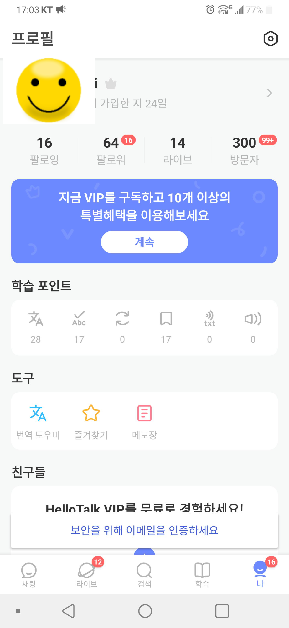 유료 회원이 될수도 있는데 딱히 유료 버전이 필요하진 않다. 단, 무료버전은 한가지 언어만 설정이 가능해서 만약 여러가지 언어를 동시에 공부중이라면 유료버전이 유용할수 있겠다. 하지만 무료 버전이라고 해도 프로필만 작성하면 바로 '친구하자', '너의 공부에 도움이 되고 싶어','스페인어 공부하고 싶니?' 등등 문자가 쏟아져 들어온다. 처음엔 대답을 좀 했는데, 대화가 딱히 진전이 되는 것도 아니고 어떤 사람인지 알수가 없으니 대화내용도 제한적이어서 개인 메시지는 거의 하지 않게 되었다. 대신 라이브에 포스팅을 적으면 스페인어권 친구들이 와서 바로 교정을 해준다. 이 기능이 정말 꿀이다. 거의 24시간 나를 위한 빨간펜 선생님이 실시간 대기하고 있는 느낌이랄까? 대신 나도 앱을 켤때마다 새로 올라온 다른 사람들의 포스팅에 틈틈히 한국어 교정을 해준다. 내 글에 정성스런 교정을 남겨준 사람은 친구로 등록을 해두기도 한다. 서로 교정을 많이 남기는 사람끼리는 익숙해져서 더 애정이 가고 또 서로 더 열심히 교정을 봐 주게 된다. 이렇게 매일매일 한두줄이라도 스작을 남겨본다. 이게 일기지 일기가 별거있나.